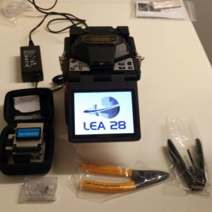 – La soudeuse est utilisée pour relier deux fibres optiques bout à bout à l’aide de la chaleur, pour fondre ensemble les deux fibres de telle sorte que la lumière passant à travers les fibres ne sont pas dispersées ou réfléchie par l’épissure, et de sorte que l’épissure et la région qui l’entoure sont presque aussi fortes que la fibre vierge.